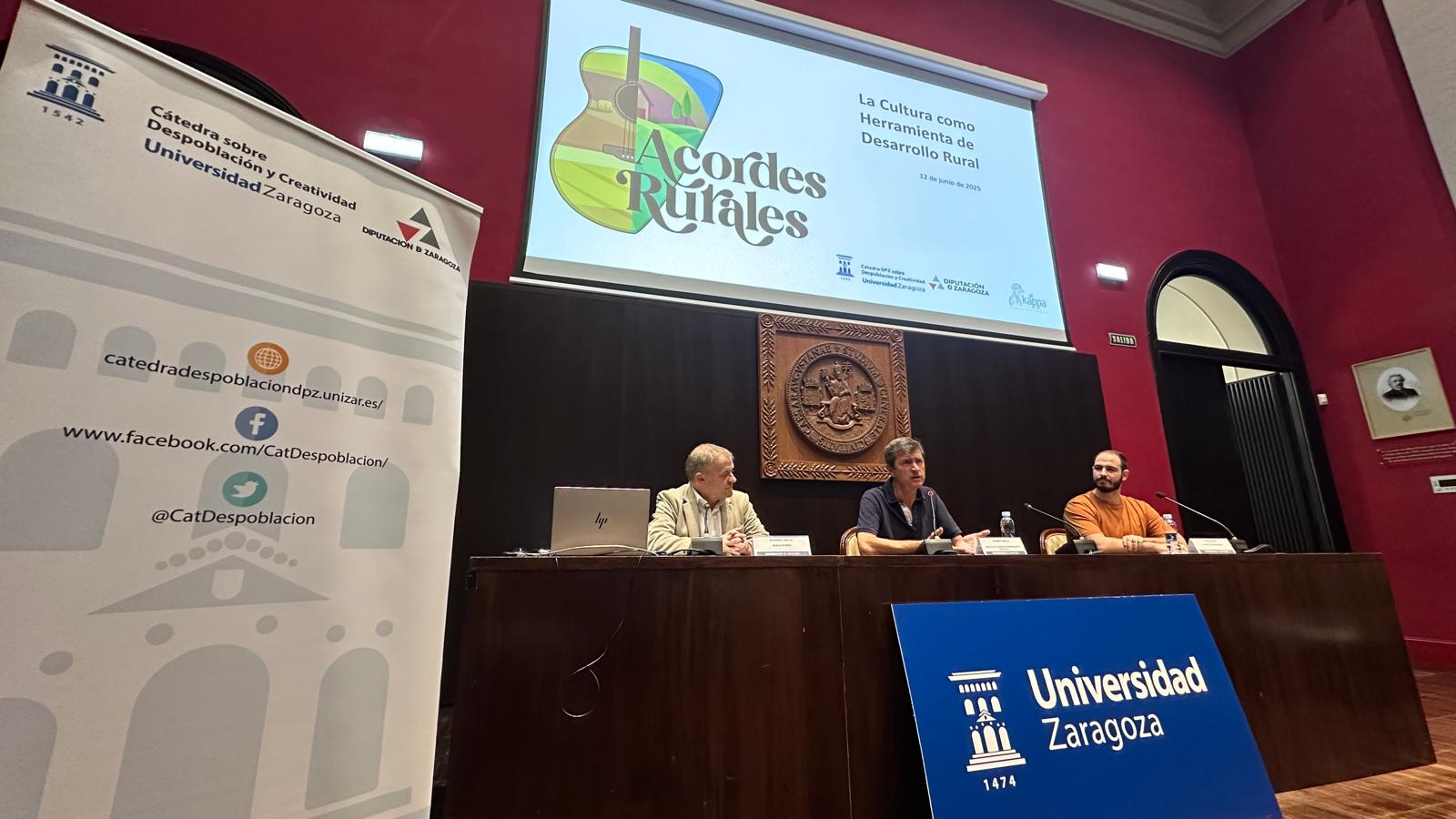 La cultura como elemento dinamizador del medio rural y motor de su desarrollo fue el eje de la jornada celebrada este jueves 12 de junio en el Aula Magna del Paraninfo de Zaragoza. Titulada “La cultura como herramienta de desarrollo rural”, la cita fue organizada por la Cátedra DPZ de Despoblación y Creatividad, en colaboración con la Universidad de Zaragoza y con la participación del videpodcast y proyecto transmedia Acordes Rurales.