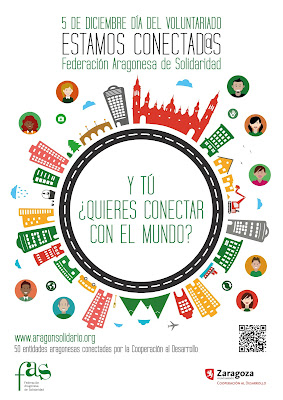 El sábado, 5 de diciembre, se celebra el Día Internacional de los Voluntarios, y la Federación Aragonesa de Solidaridad (FAS) suma su campaña “Estamos conectad@s” como homenaje a todos ellos y como invitación especial para que la ciudadanía pueda conocer mejor las distintas opciones que existen para “conectar” con el voluntariado internacional y la cooperación al desarrollo.