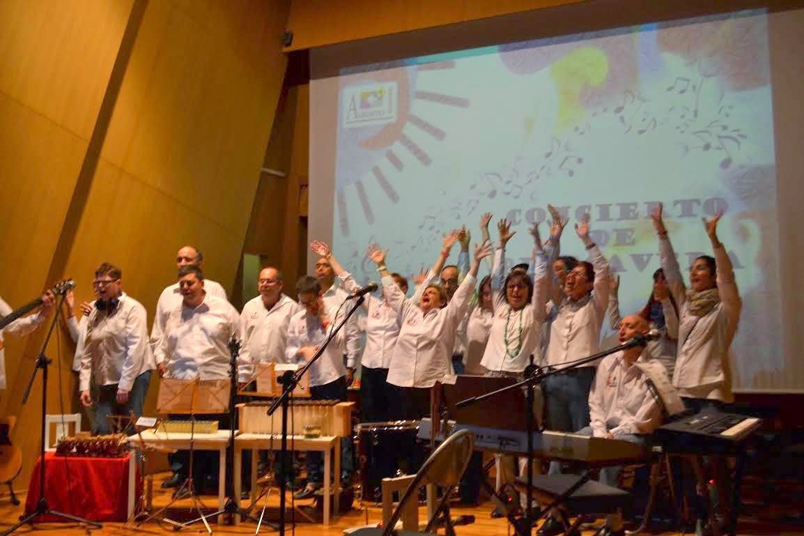 Bajo la dirección de las musicoterapeutas Carmen Alperte y Sara Bosque, los alumnos del Aula de Músicos de Autismo Aragón han conquistado al público y han dejado muy claro lo que supone la musicoterapia para las personas con trastorno del espectro autista (TEA). Un vídeo ha mostrado además cómo se ha vivido esta apasionante aventura que comenzó en 2013 y promete mucho recorrido. El broche de oro del Concierto de Primavera de hoy lo han puesto las voces y el entusiasmo del Coro de Atades Huesca.