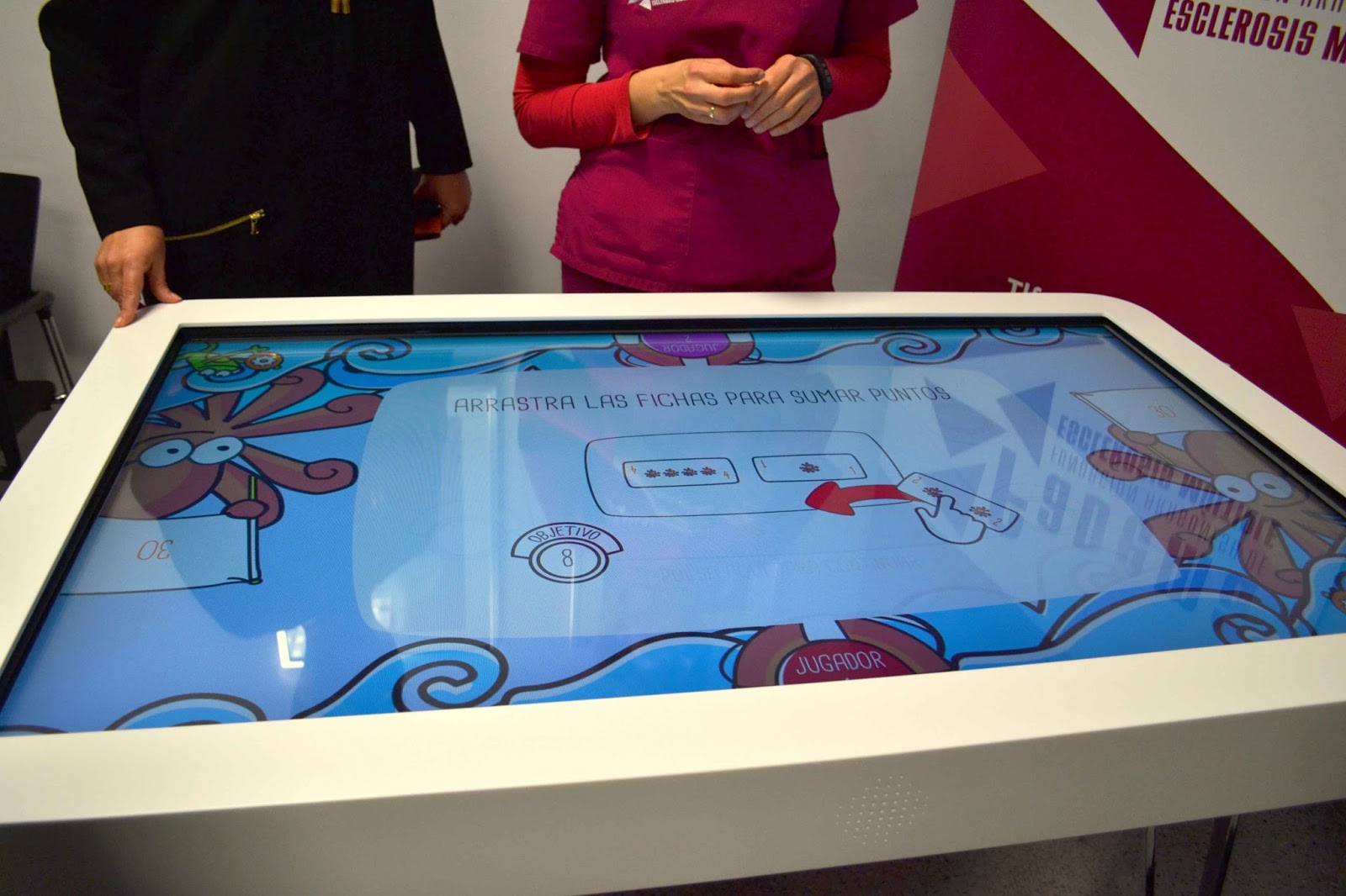 · La mesa, de la empresa Virtualware y donada por Merck, está pensada como una herramienta de rehabilitación cognitiva para los pacientes con esclerosis múltiple