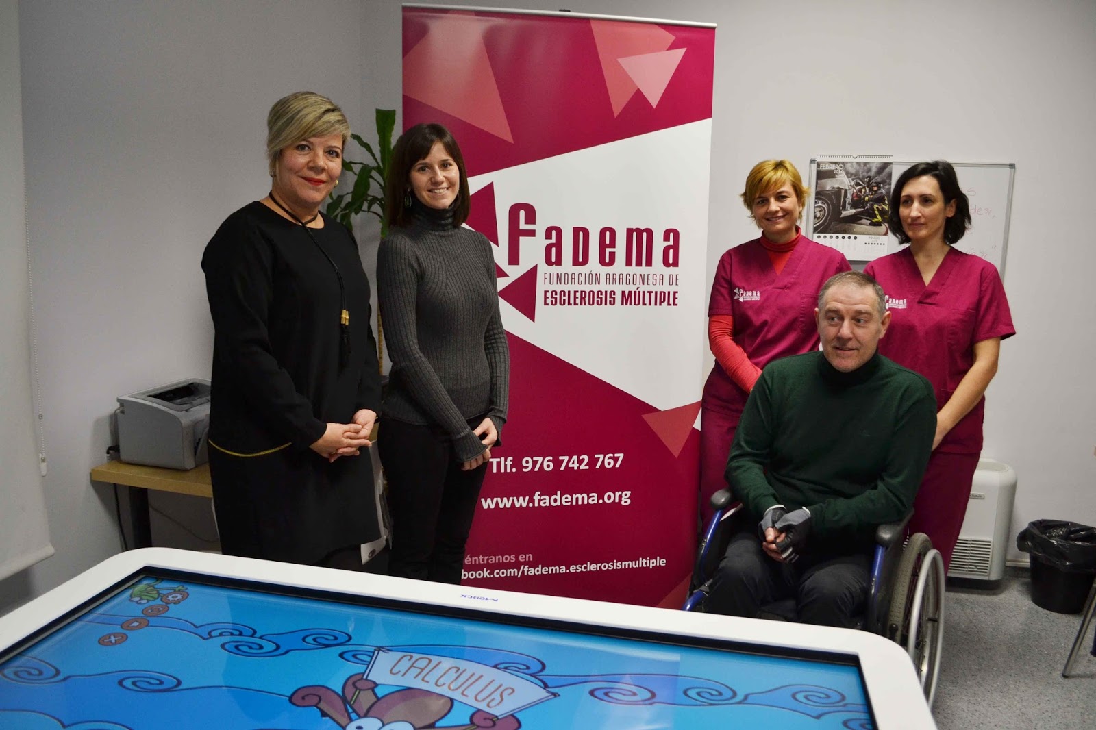 La Fundación Aragonesa de Esclerosis Múltiple (FADEMA) ha incorporado a sus instalaciones de Zaragoza una nueva mesa interactiva para los pacientes de esclerosis múltiple (EM) que formará parte de los recursos de su Aula de Rehabilitación Virtual. La mesa, denominada ‘AtouchInteractiveTable’, ha sido desarrollada por la empresa española Virtualware y donada por la compañía alemana Merck como resultado del ranking realizado por los usuarios de la aplicación ‘Con la EM’.