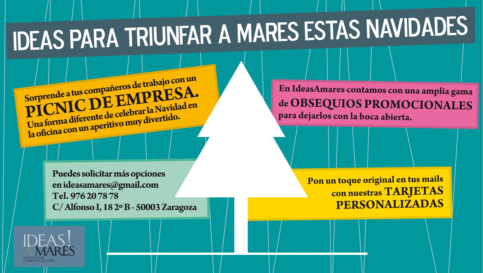 Tarjetas digitales (o impresas) originales y personalizadas, picnic de empresa a domicilio para que puedas brindar por las Fiestas y el 2013 con tus compañeros sin gastar mucho. Regalos promocionales ajustados a tu presupuesto y, todo lo que se te ocurra, te lo ofrecemos en IdeasAmares.