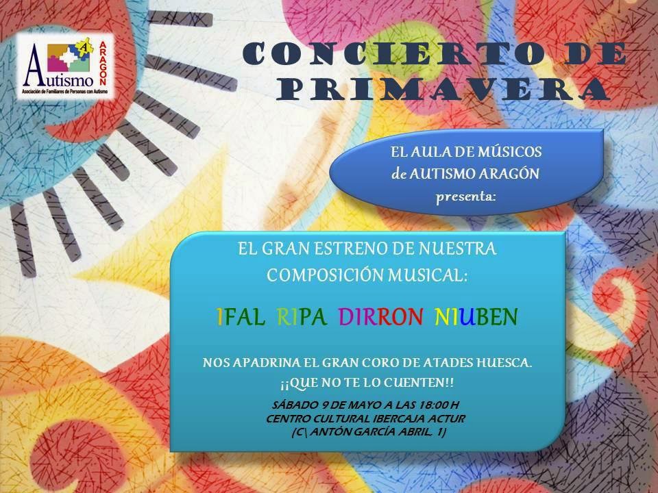 Bajo la dirección de las musicoterapeutas Carmen Alperte y Sara Bosque, los chicos y chicas del aula de músicos de Autismo Aragón interpretarán sobre el escenario un variado repertorio en el que destacará la presentación de un tema compuesto e interpretado por ellos mismos bajo el título Ifal Ripa Dirron Niuben.