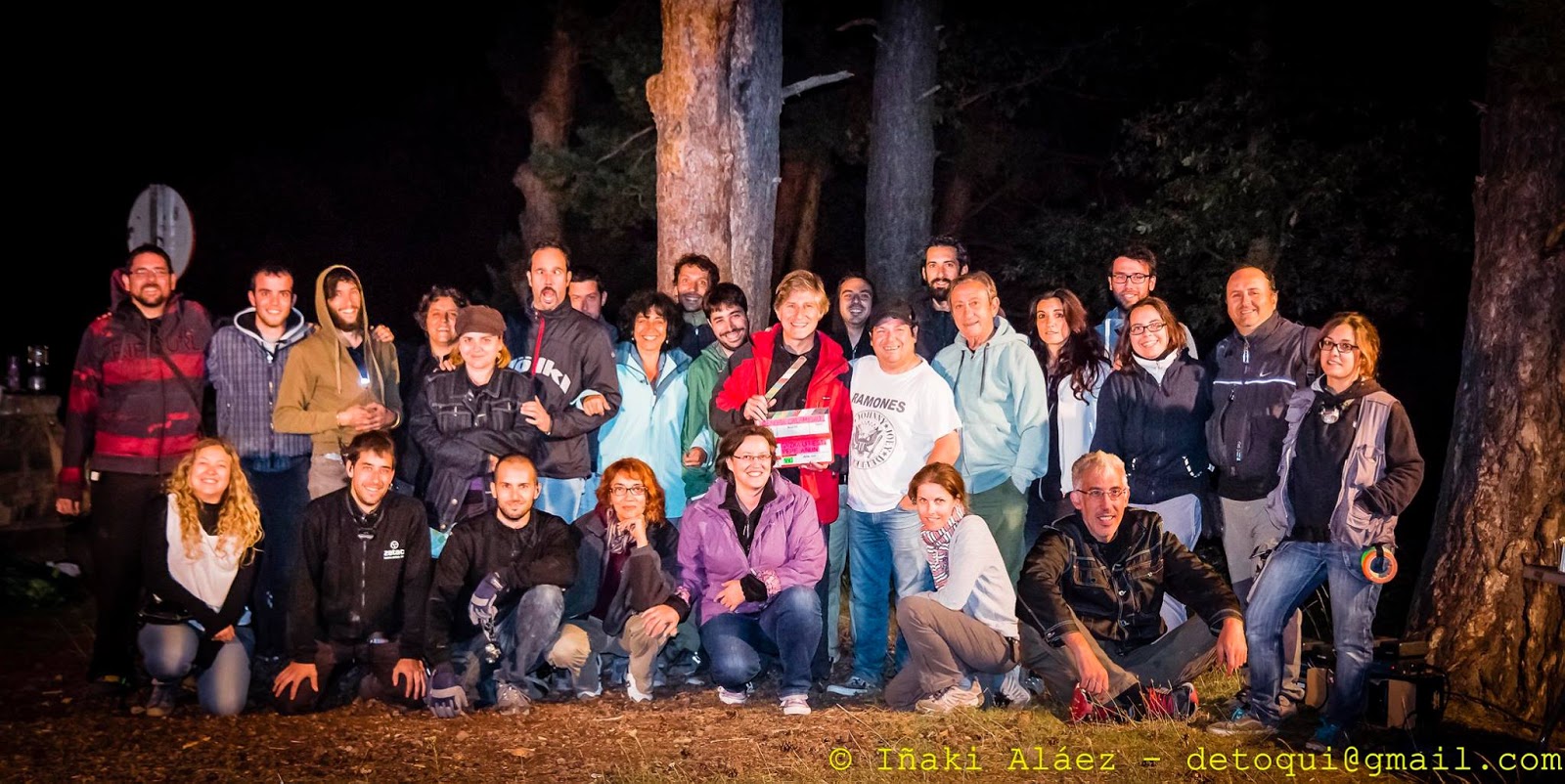 | Una parte del elenco de actores con el director. |